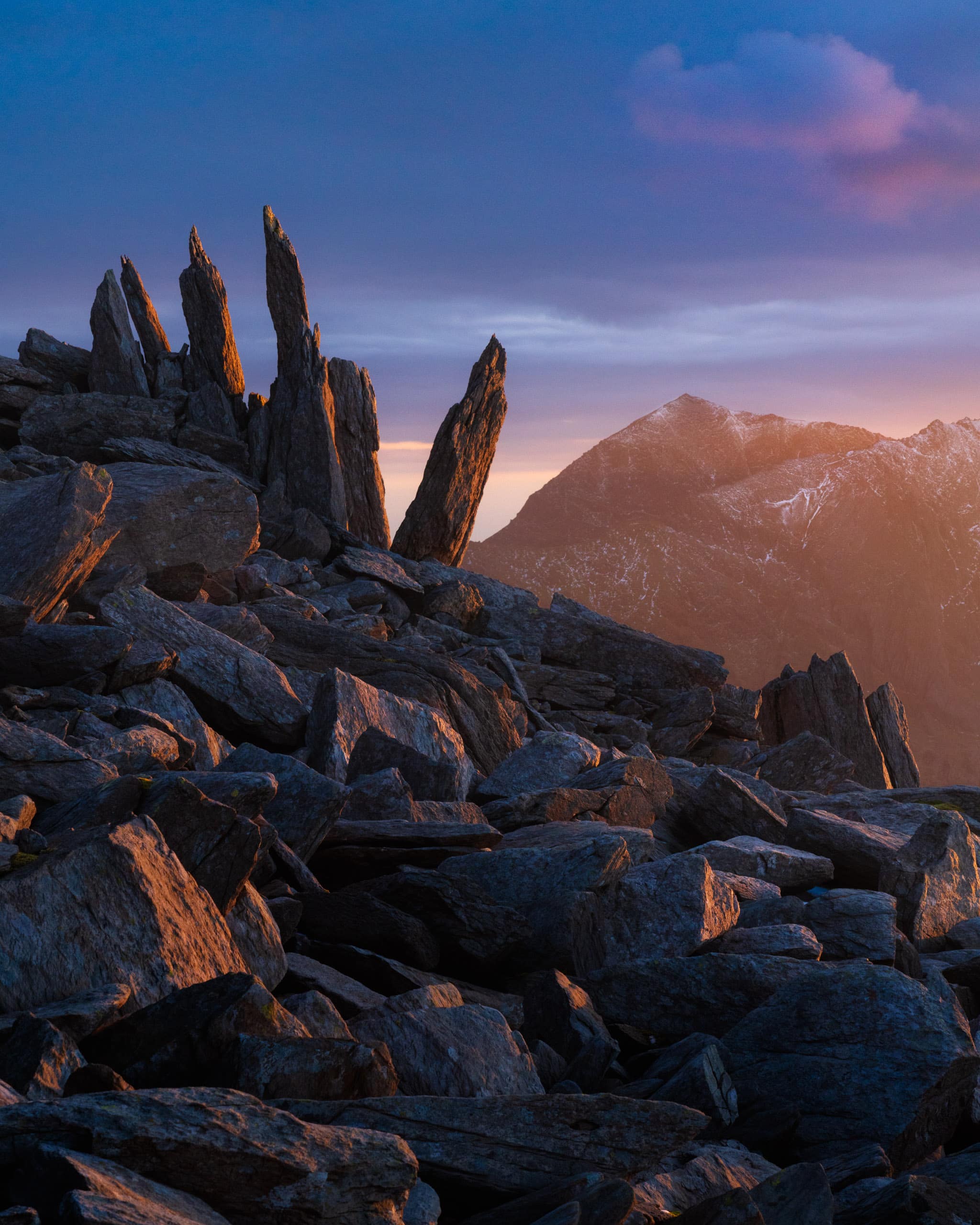 For a while, I have wanted to combine my photography with hiking. I want to build my fitness to explore familiar areas and get unique shots. This shot was from the first such trip of 2022. In February, while there was still snow on the peaks, I hiked the Glyderau range starting in Ogwen. I had intended this circular walk to get me back to the car by lunchtime and I set off before sunrise, but once I got to the peak here at Glyder Fawr, I realised that I had to stick around for good light. The winds were strong and bitingly cold, but I found shelter and waited on this composition for 4 hours until sunset. I think the results are worth it. Climbing down an unfamiliar scramble at night wasn’t my favourite way to end the day, but dinner back at camp that night never tasted so good!