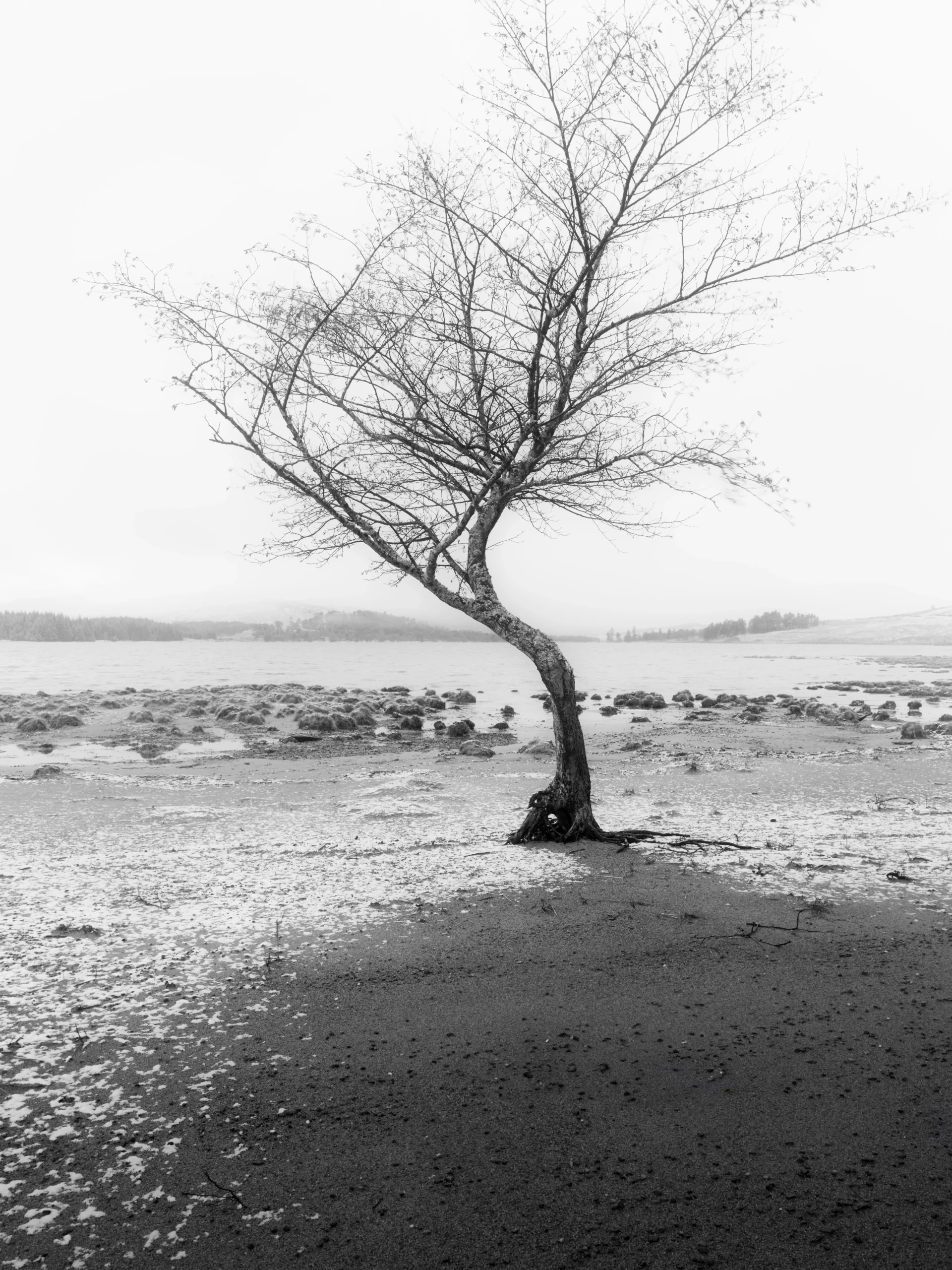 I’ve not had much luck photographing Loch Tulla. In the warmer seasons the midges are the worst thing about this area, and when I went there in winter I got sleet. Wet snow makes managing your photography gear hard work. To make things worse, I had forgotten my umbrella. After a futile few minutes trying to take photos while my front element caked up with snow, I called it quits, covered my cameras with a Sainsbury’s bag, and hunkered down beneath a nearby tree. The downpour soon passed. Soaked and shivering, I mopped as much water from my lens as possible and made an image of the shadow left in the lee of the birch. I had about two minutes to work before the snow melted, but I am quite pleased with the result.